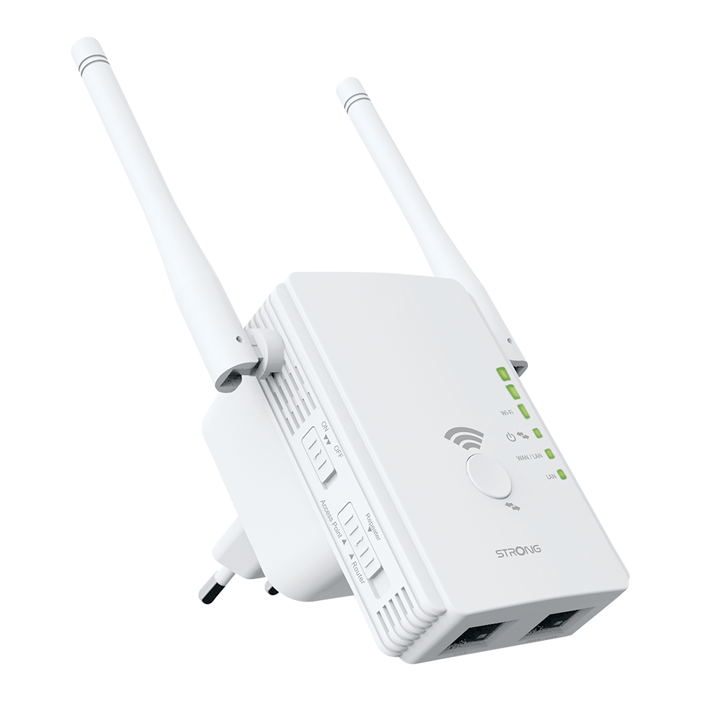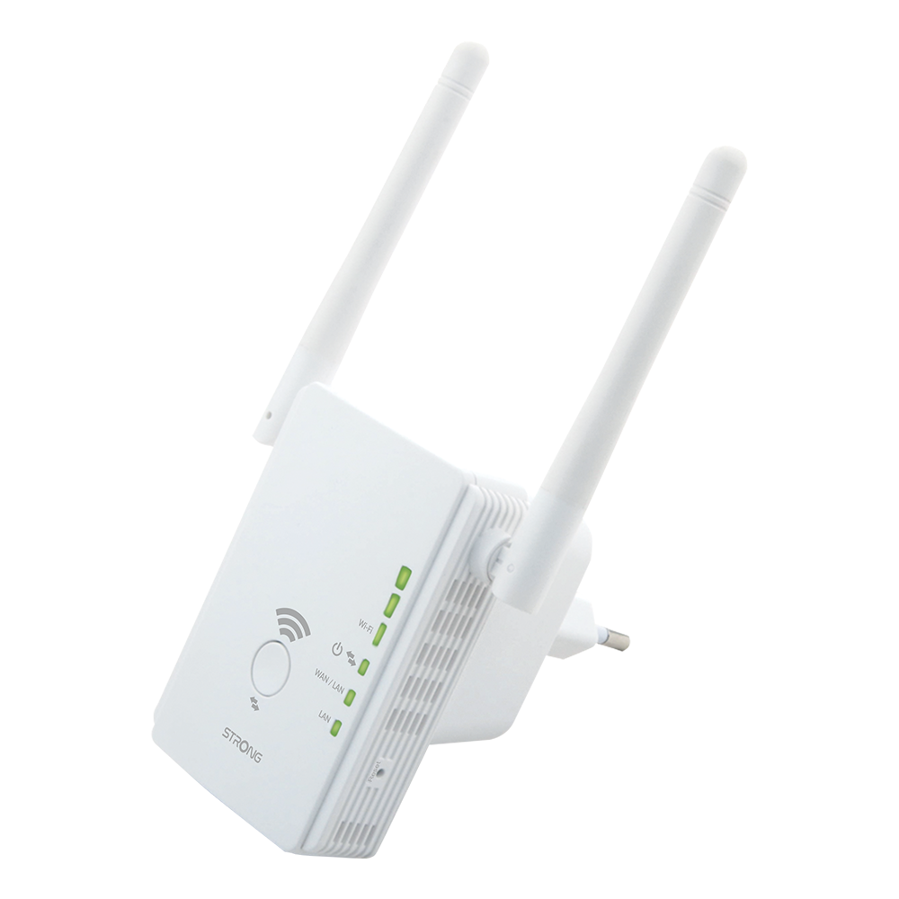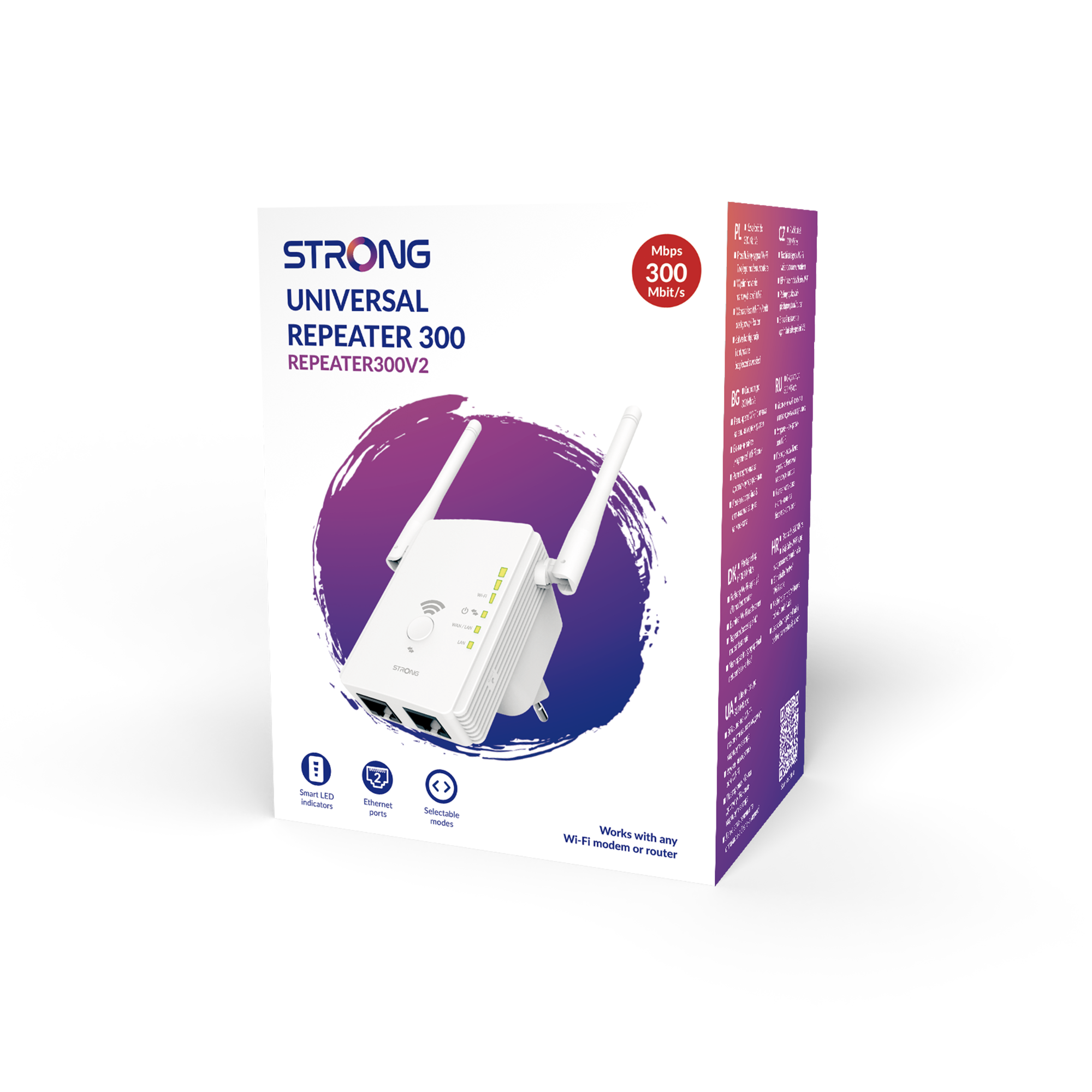 Uniwersalny Repeater 300 firmy STRONG jest doskonałym rozwiązaniem aby zwiększyć zasięg 802.11n Twojego modemu lub routera w domu tak szybko jak jest to tylko możliwe. Z maksymalną szybkością 300 Mbit/s, nasz uniwersalny Repeater 300 o kompaktowych wymiarach został zaprojektowany do umieszczenia w dosłownie każdym gniazdku elektrycznym Twojego domu.